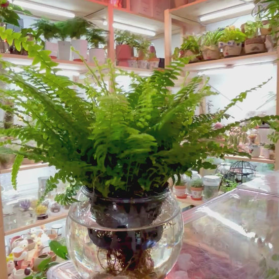 Package includes Boston Ferns potted in glass jar with hydroponic fertiliser(for 2 litres of water)